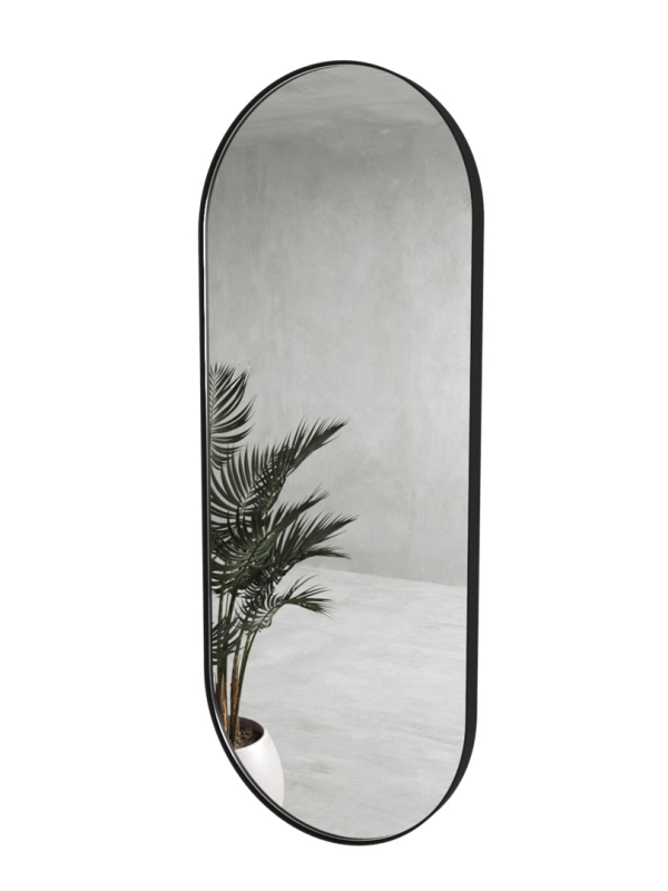 Дизайнерское овальное настенное зеркало Glass Memory Harmony в металлической раме черного цвета в Пензе